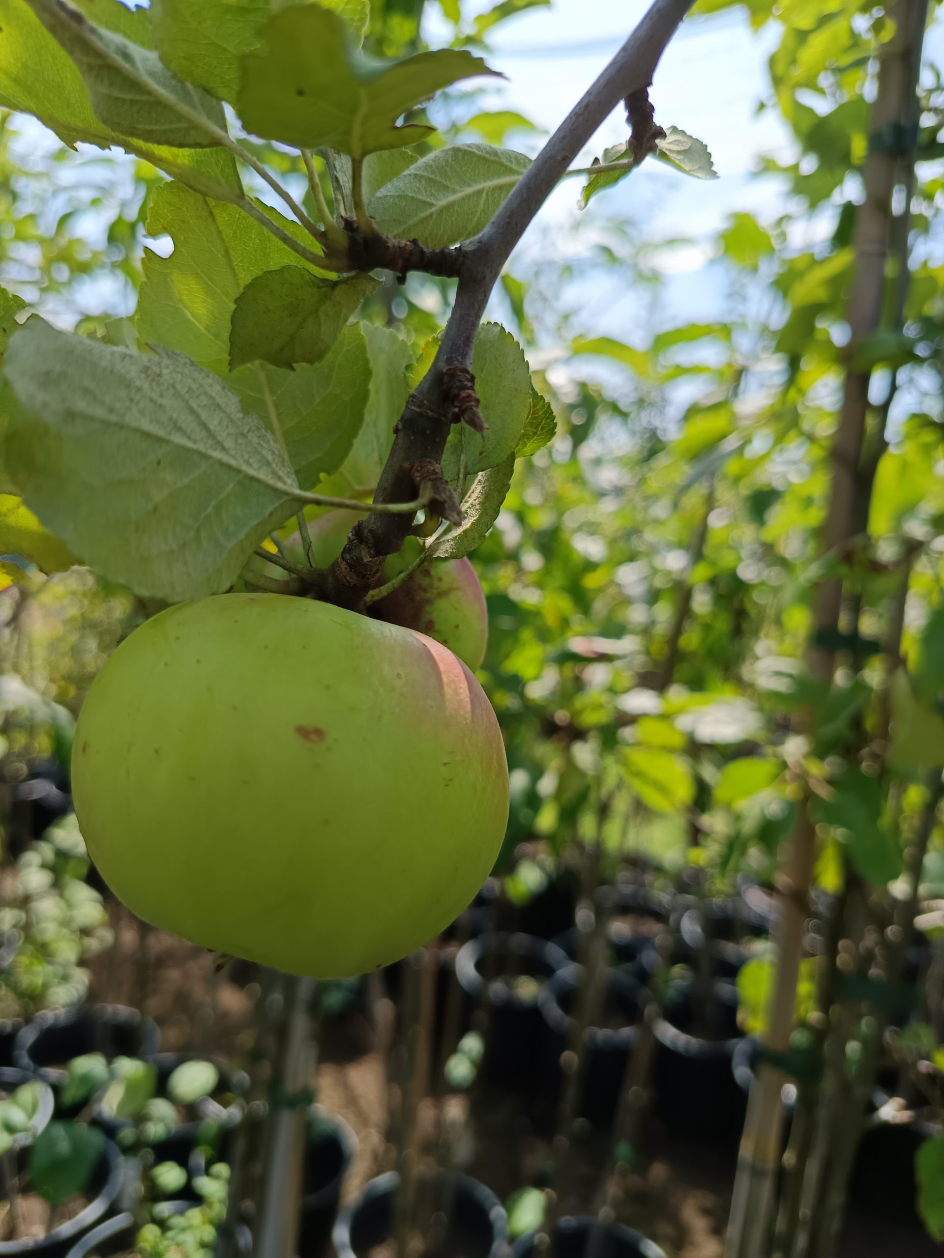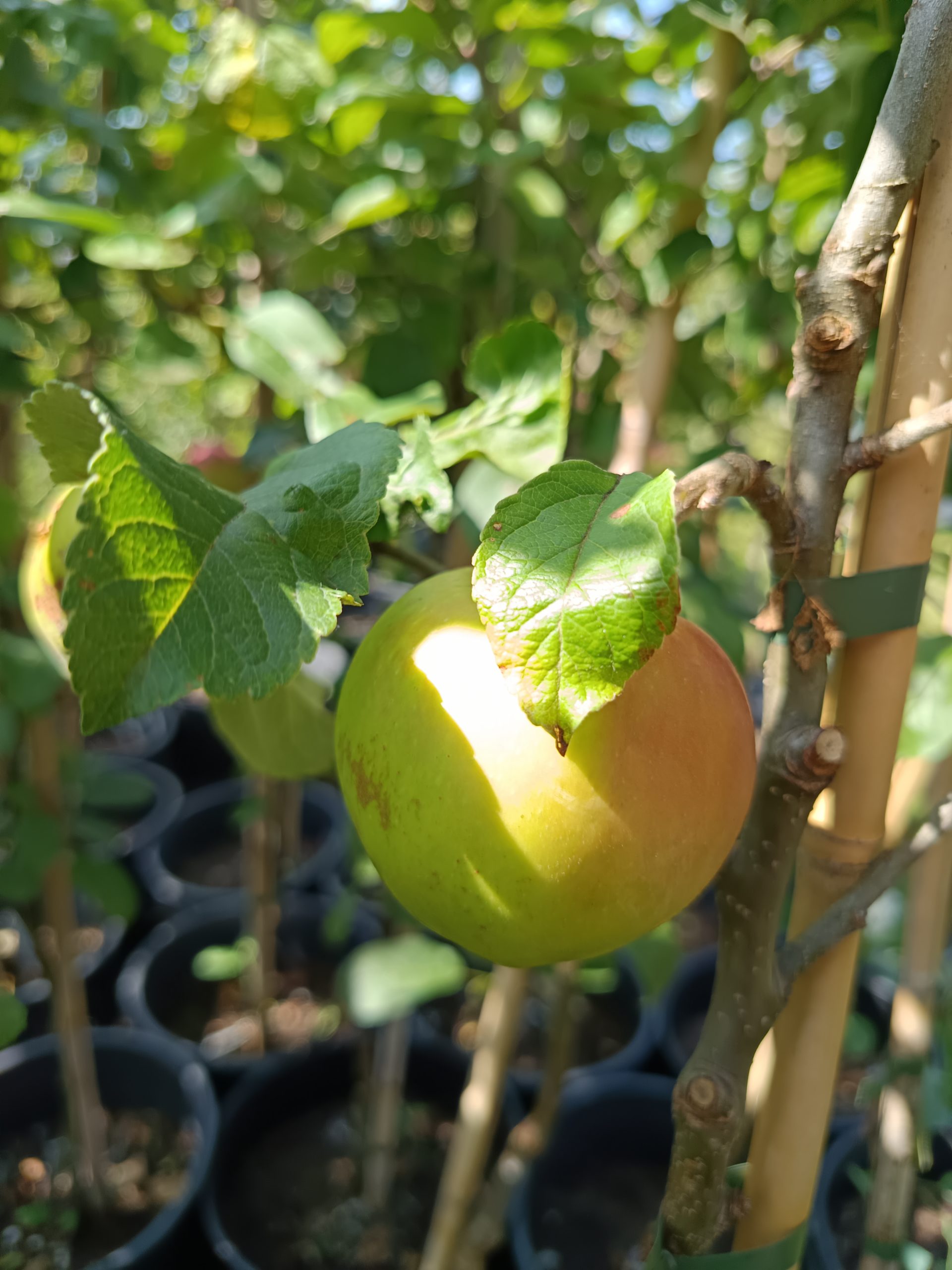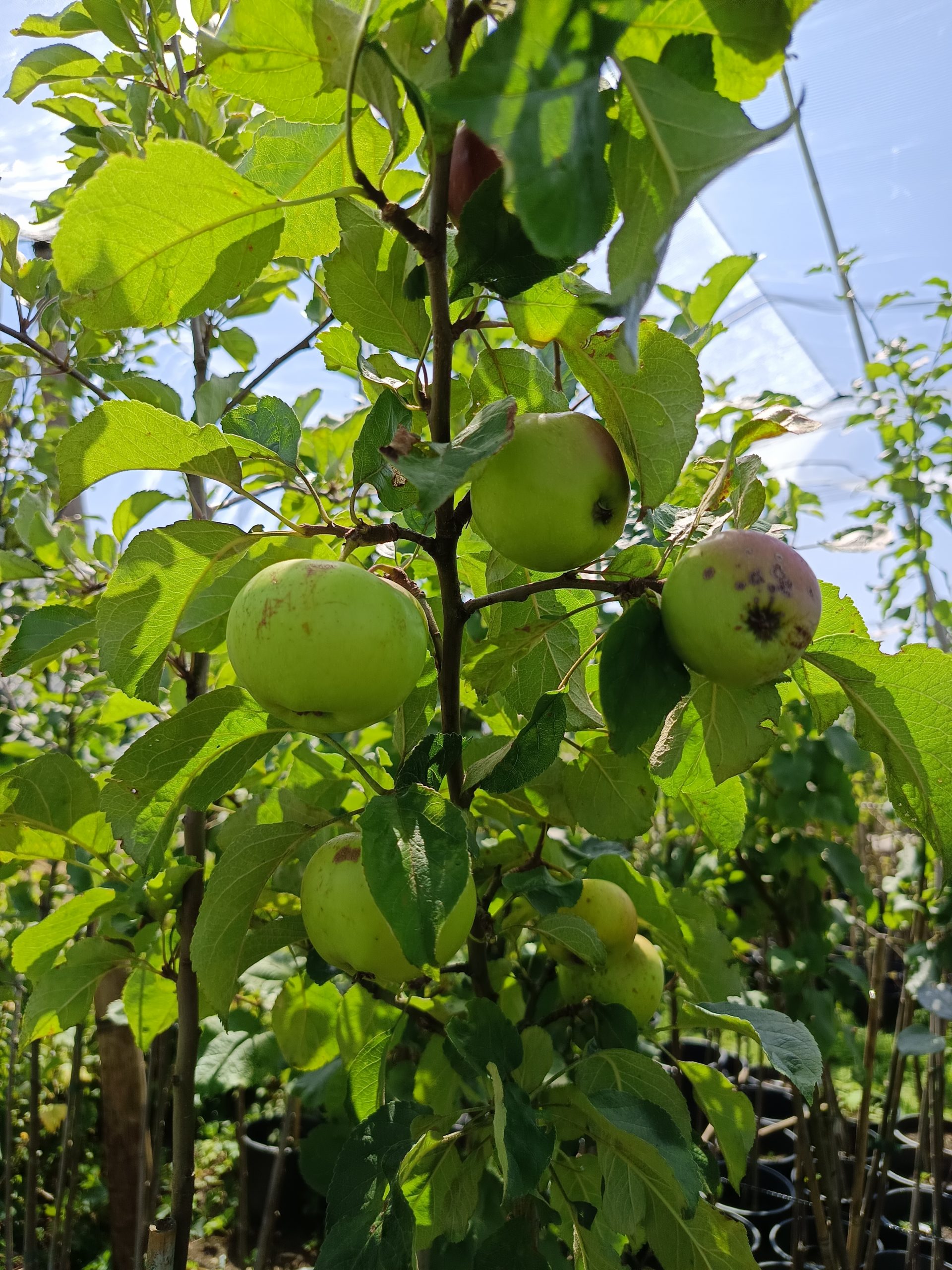 Ein jährlicher Auslichtungsschnitt fördert die Fruchtqualität und beugt Alternanz vor. Die mittelstarke Wuchskraft der Unterlage M7 erleichtert die Pflege und Ernte.
